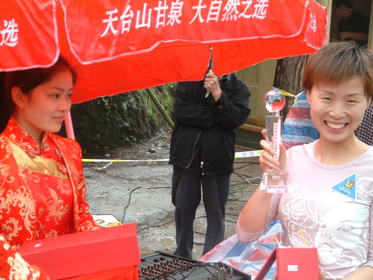 上面的兄弟,请看在我被采访的那张照片,右下角那个穿红短袖的女孩啊,就是俺家夫人!漂亮不??哪个拿奖杯的是领队夫人,也是俺本家人!!!